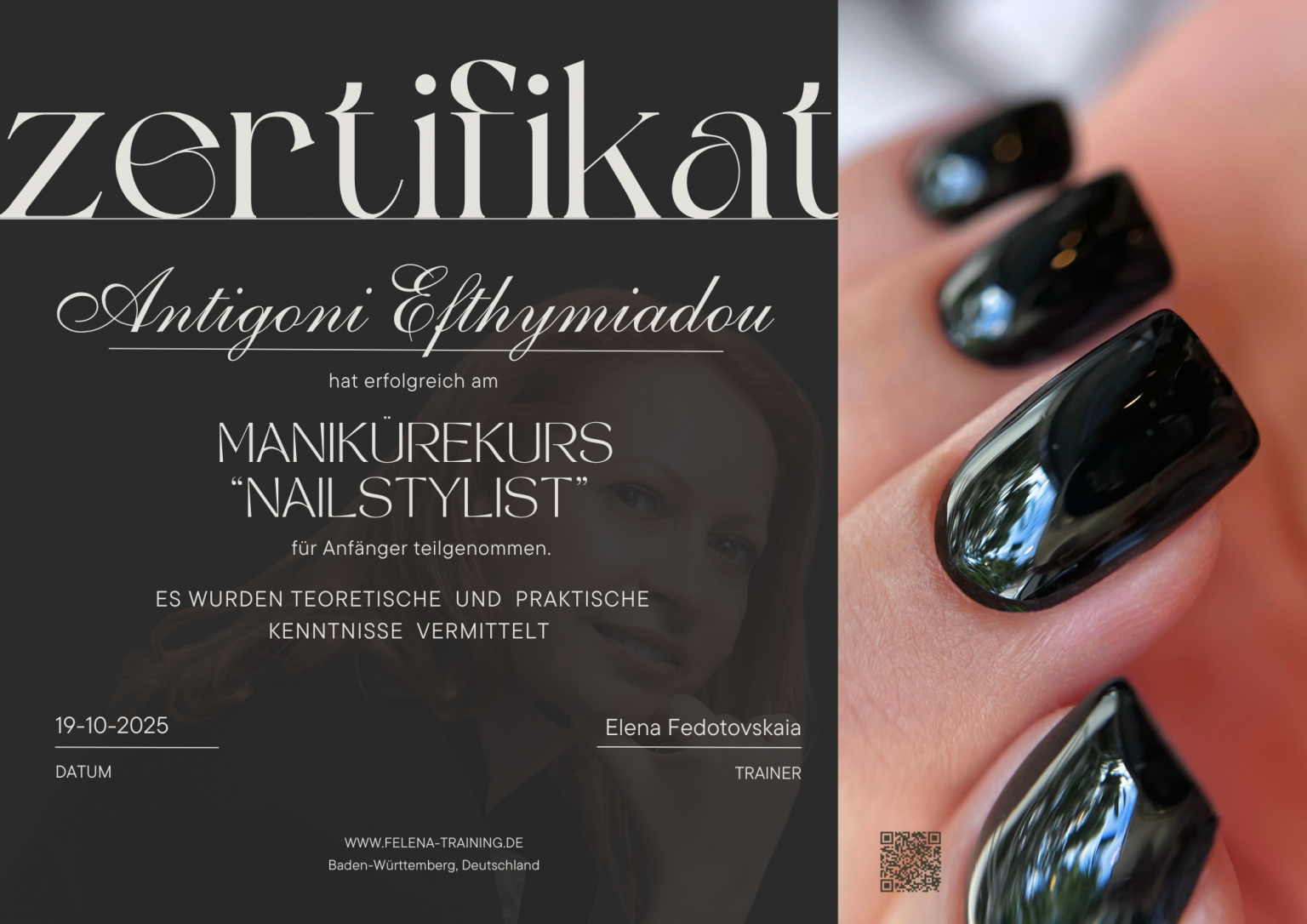 Данный сертификат дает вам право работать только на территории Германии, как самостоятельный предприниматель, так и работать в салоне