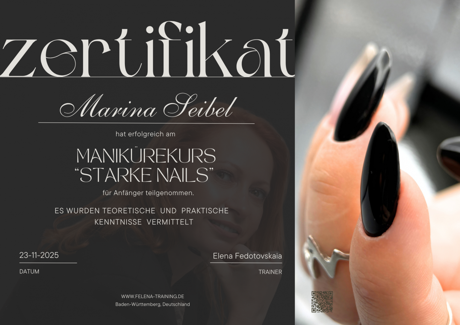 Данный сертификат дает вам право работать только на территории Германии, как самостоятельный предприниматель, так и работать в салоне